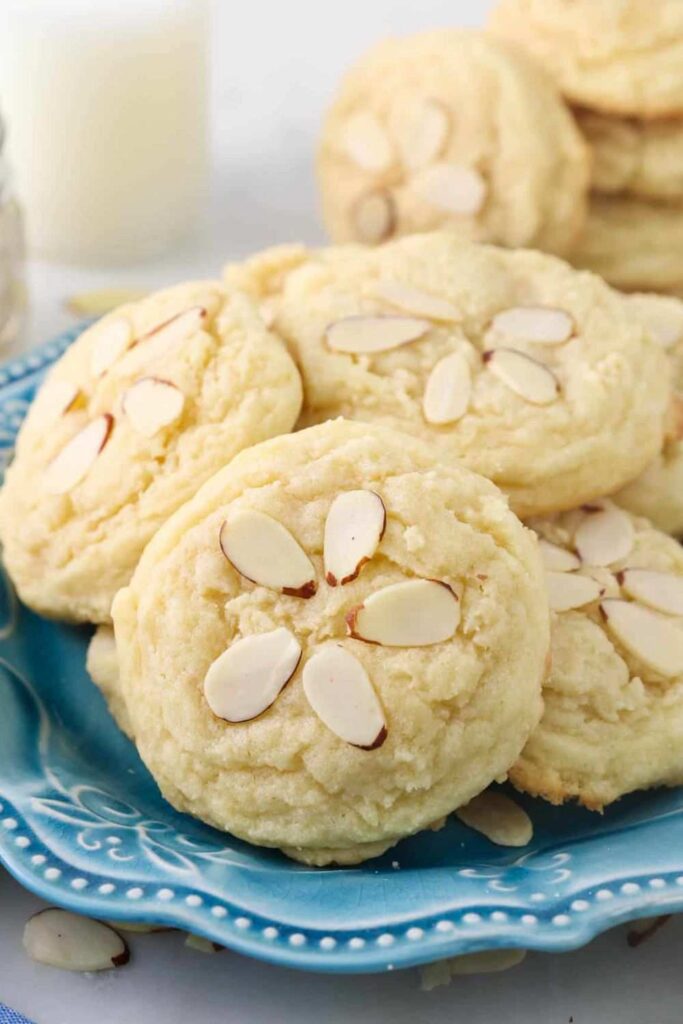 Soft, buttery cookies flavored with almond extract and topped with sliced almonds.